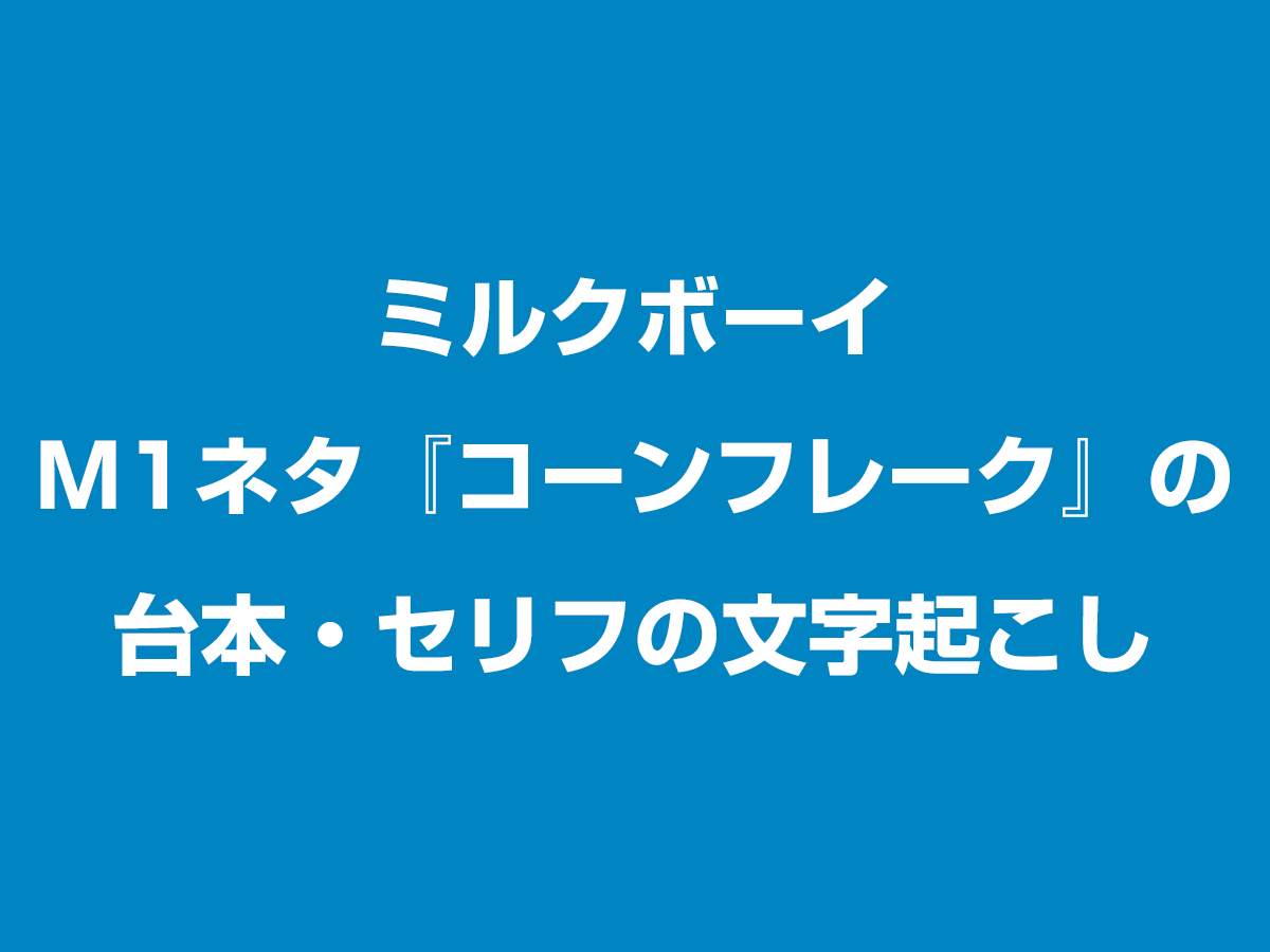 ミルクボーイM1ネタ『コーンフレーク』の台本・セリフの文字起こし(M1グランプリ決勝ネタ)