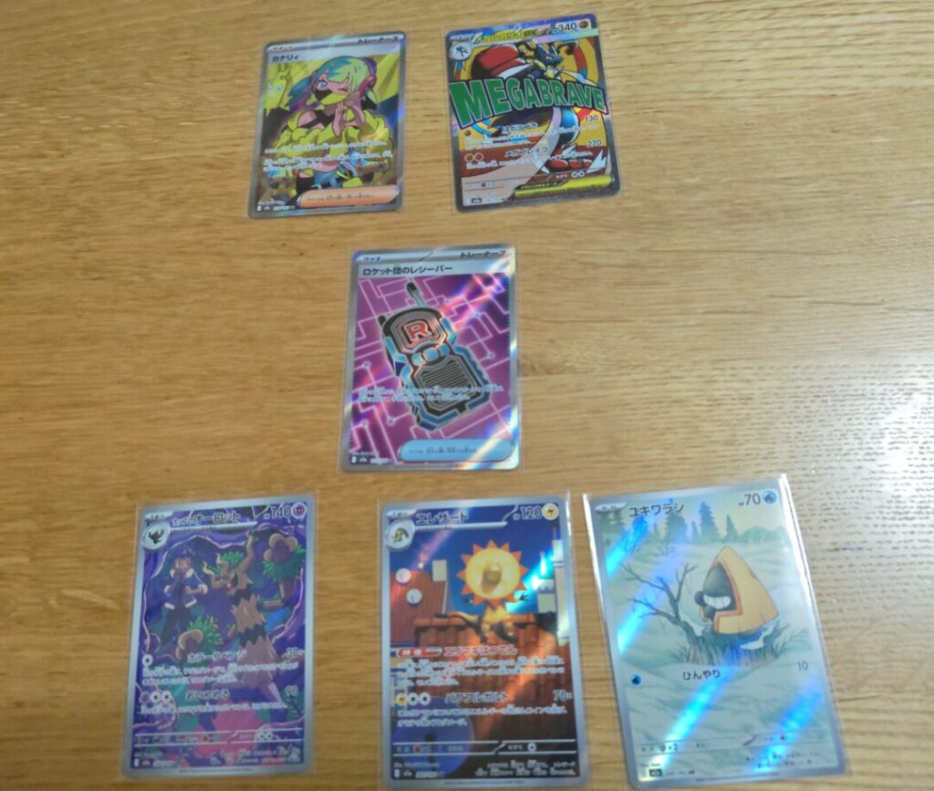 その他にARが3枚とか今はほとんど価値がないサポートSRなども出現しましたが、合計の価値としては2500円と言ったところでしょう。