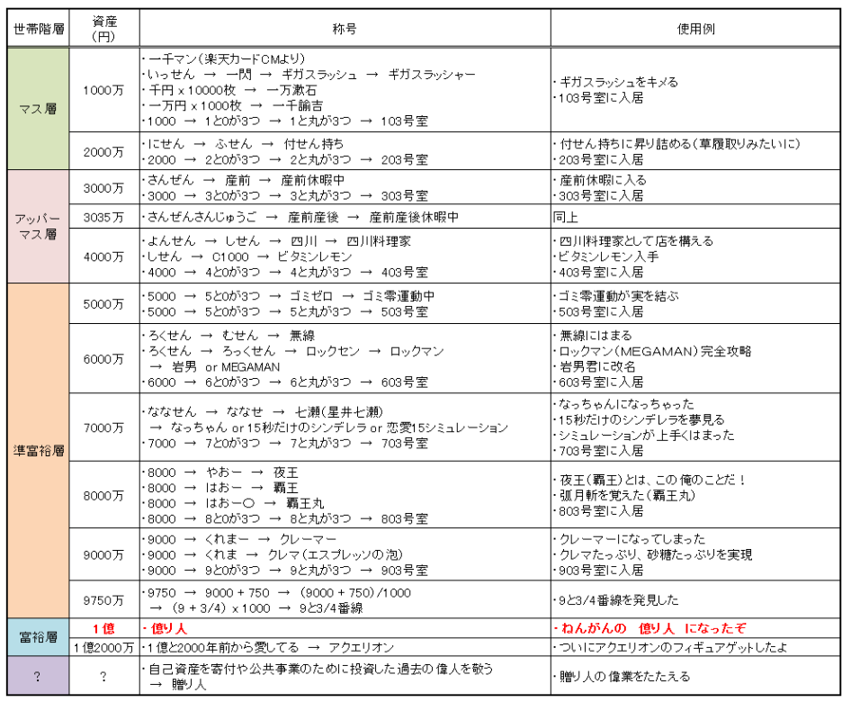 あなたの肩書きも資産1億円以上で億り人! そこまで待てない人のために途中の称号を考案で確認してみてください。