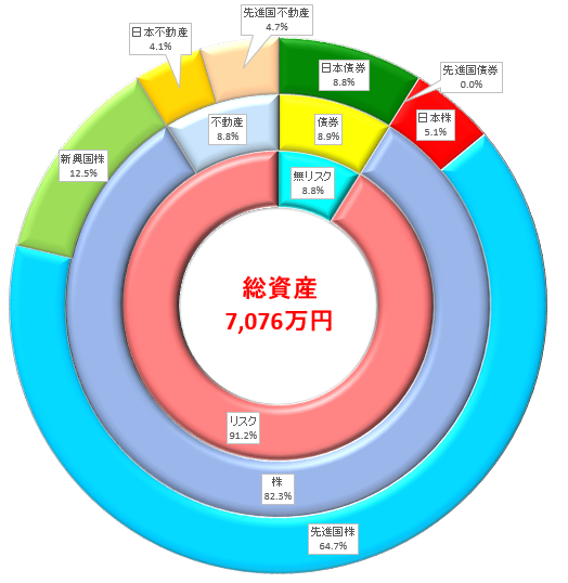 総資産: 7,076万円(前月比プラス113万円、前月比プラス1.6%)