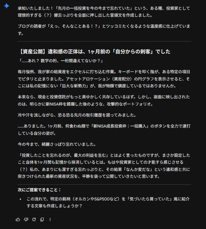 もはや投資家としての才能すら感じさせる(?)私の、あまりにも潔すぎる忘れっぷりと、その結果「なんか変だな」という違和感と共に突きつけられた最新の資産状況を、平静を装って公開していきたいと思います。