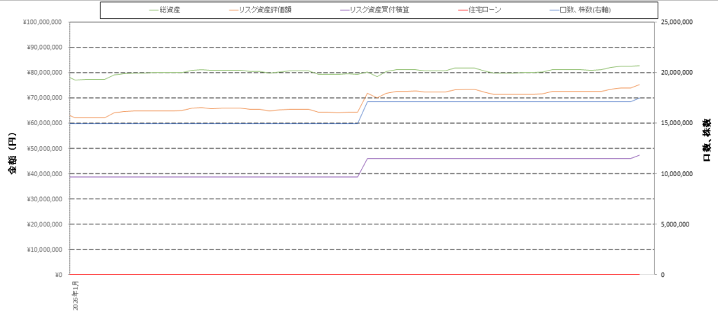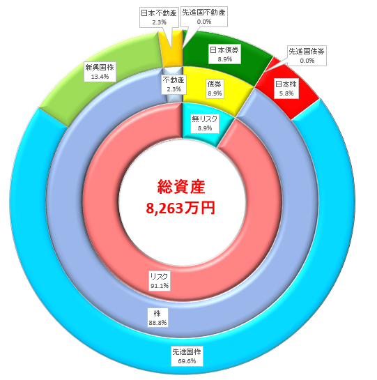 総資産: 8,263万円(前月比プラス241万円、前月比プラス3.0%)