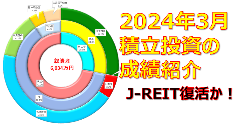 【2024年2月】積立投資で資産運用 前月比プラス139万円!J-REITだけ下がりました