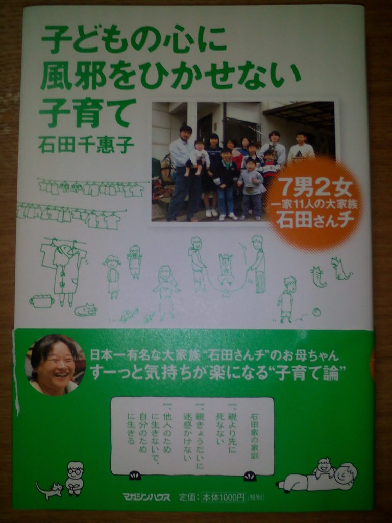 石田さんチのお母さんの千惠子さんは、2011年に”子どもの心に風邪をひかせない子育て”という本を出版されています。